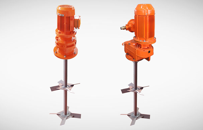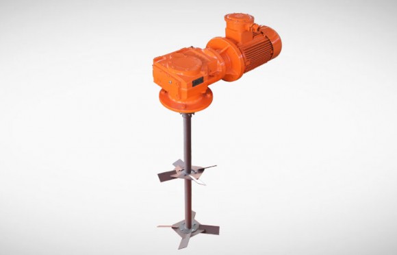 泥漿攪拌器屬于鉆井液罐式固控設(shè)備中的一種,其主要用于鉆井液的攪拌混合,防止鉆井液固相顆粒在其罐式循環(huán)系統(tǒng)中沉積,使循環(huán)鉆井液性能穩(wěn)定,混合均勻。泥漿攪拌器的傳動結(jié)構(gòu)主要由電機、減速裝置、聯(lián)軸器及攪拌軸組成。在固控設(shè)備中最常用的泥漿攪拌器的形式并不多。主要為以下2種: