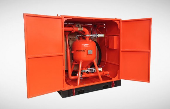污泥真空泵,又叫固體輸送泵或鉆屑輸送泵, 是一種高載荷強(qiáng)吸力的氣動(dòng)真空輸送泵。其通過(guò)氣動(dòng)形成真空進(jìn)行抽吸, 然后轉(zhuǎn)換成正壓進(jìn)行物料排放的一種真空泵。能夠抽吸固體,粉體,液體和固液混合物等多種不同物料的輸送。其獨(dú)特的結(jié)構(gòu)設(shè)計(jì),腔體內(nèi)無(wú)旋轉(zhuǎn)部件,使其能夠在最艱苦的環(huán)境作業(yè),且維修率低,可高速輸送固相超過(guò)80% 的物料和高比重物料。 具有如下特征:高效文丘里裝置在強(qiáng)氣流情況下可產(chǎn)生高達(dá)25 英寸HG(汞柱), 相當(dāng)于85Kpa 真空度對(duì)物料進(jìn)行抽吸,幾乎無(wú)磨損件。泵體結(jié)構(gòu)緊湊,且輸送距離高達(dá)500-1000 米。 常用于鉆井巖屑的輸送,含油污泥的輸送,清罐作業(yè),廢棄物抽吸遠(yuǎn)距離輸送,以及礦物和廢棄物輸送等,用途非常廣泛。